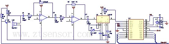 圖2 超聲波發送和接收電路,本文源自澤天傳感,版權所有,轉載請保留出處。