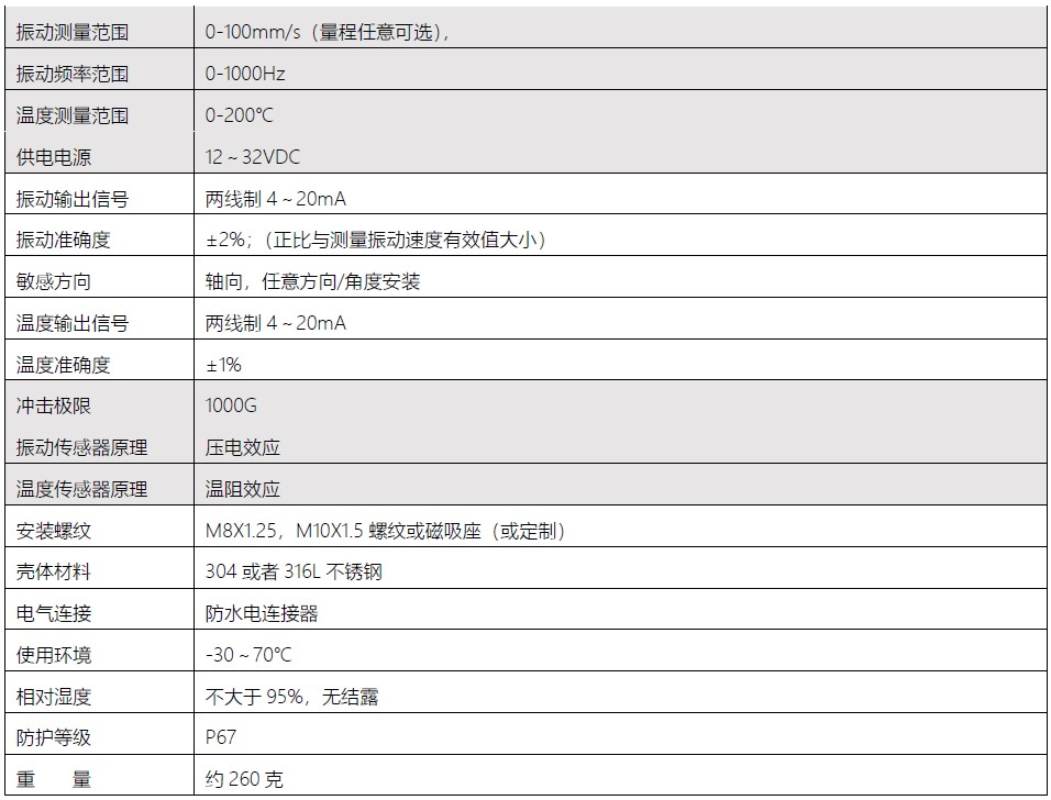 - 產品特點:???集振動和溫度兩個物理量于一體;全集成工藝;一體化結構