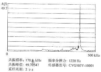 由于管腔效應(yīng)的影響太大,有時(shí)為了克服工藝難點(diǎn),甚至不惜適當(dāng)加大膜片半徑以保證傳感器能齊平封裝。筆者用于某空氣動(dòng)力學(xué)研究及某化爆自由場測試的動(dòng)態(tài)壓力傳感器即采用了這種設(shè)計(jì)原則。其0~0.4MPa,……0~4MPa的多種動(dòng)壓傳感器,固有頻率在100~270kHz。用正弦波動(dòng)態(tài)實(shí)校,在5kHz范圍內(nèi),幾乎無動(dòng)態(tài)附加誤差。圖1即為一只量程1 MPa的動(dòng)態(tài)壓力傳感器用激波管實(shí)驗(yàn)得出的幅頻特性曲線,其第一諧頻為170kHz,動(dòng)態(tài)誤差很小的可用帶寬在50kHz,上升時(shí)間為0.8μs。